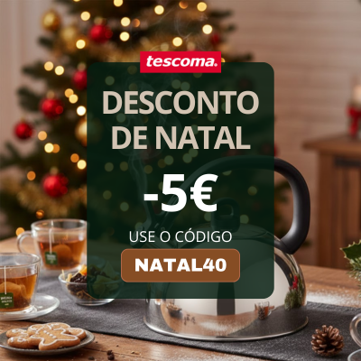 Campanha válida apenas na loja online www.tescoma.pt, em compras superiores a 40€, de 11 a 18 de dezembro. Não acumulável com outras promoções em vigor.