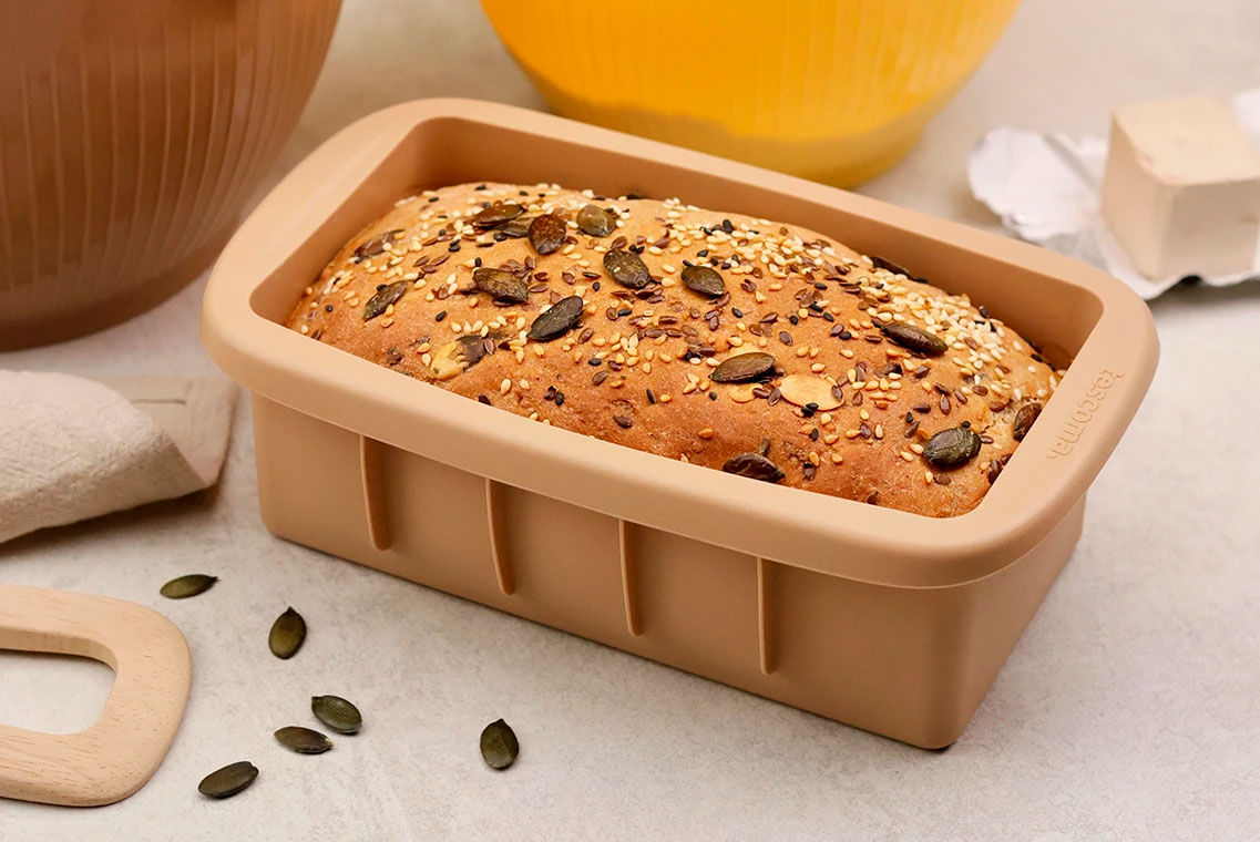 Coloque todas as sementes numa tigela com água fria e deixe-as cobertas num local fresco durante a noite. No dia seguinte, adicione a farinha, o sal e o fermento previamente misturados em água morna às sementes e à água. Bata bem a massa e deixe repousar por 10 minutos. De seguida, bata novamente, coloque numa forma de silicone e deixe crescer por cerca de uma hora e meia, coberta com um pano. Pincele a massa crescida com água salgada e polvilhe as sementes.Pré-aqueça o forno a 250 °C , coloque uma taça resistente ao calor com água no fundo do forno, insira a forma com a massa, reduza a temperatura e asse o pão a 220 °C por 20 minutos. Em seguida, retire a tigela com água do forno e asse o pão na mesma temperatura por mais 15 minutos. Desenforme o pão assado e deixe arrefecer sobre uma grelha.