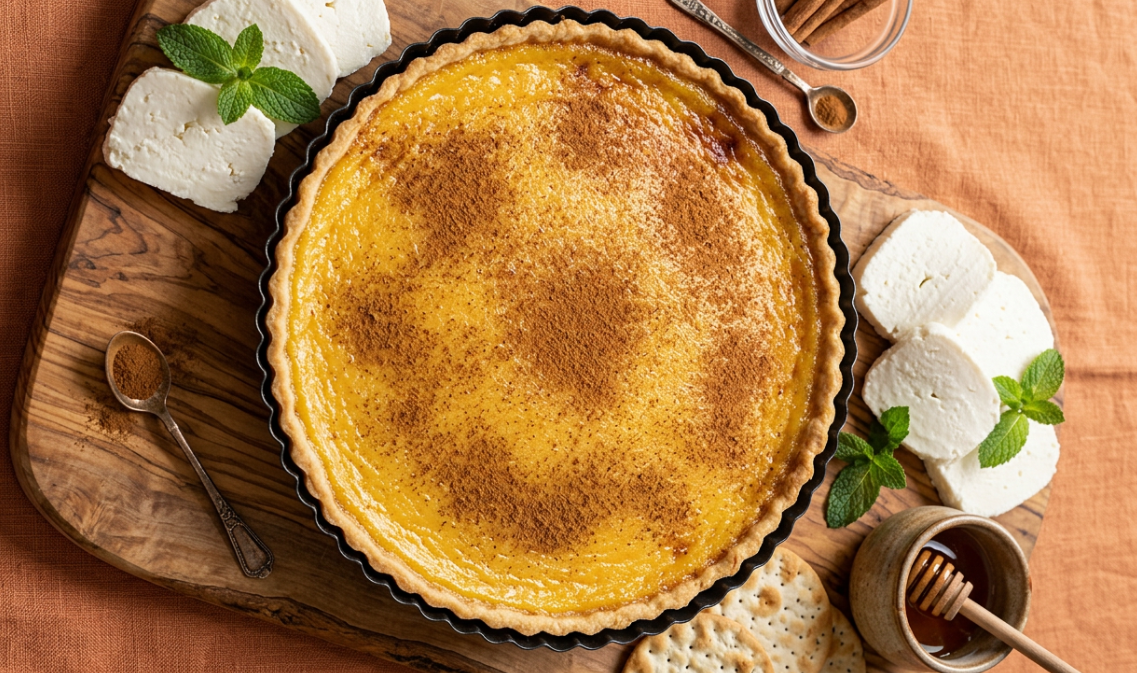 Incorpore o leite, o queijo esmagado e uma colher de chá de canela no preparado anterior. Misture tudo muito bem até estar ligado. Verta o recheio sobre a base de massa já fria.