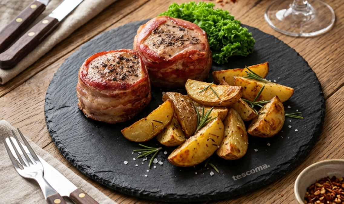 Pode servir com batatas rústicas e uma salada ou legumes salteados.